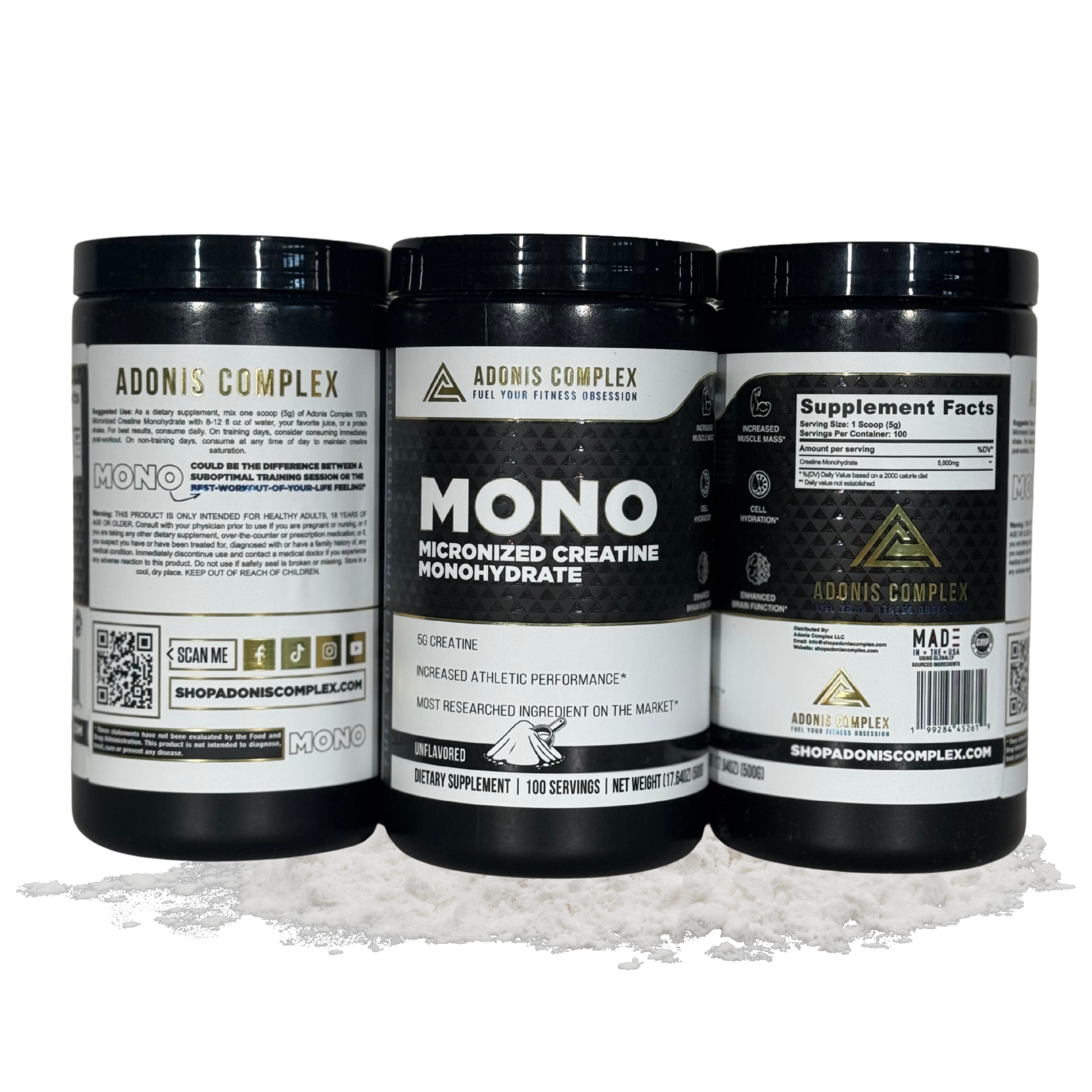 MONO is 100% pure, micronized creatine monohydrate: the most studied, effective, and trusted performance supplement on the market. No fillers, no gimmicks, and no proprietary blends. Just the clean, clinical grade creatine your muscles actually need.